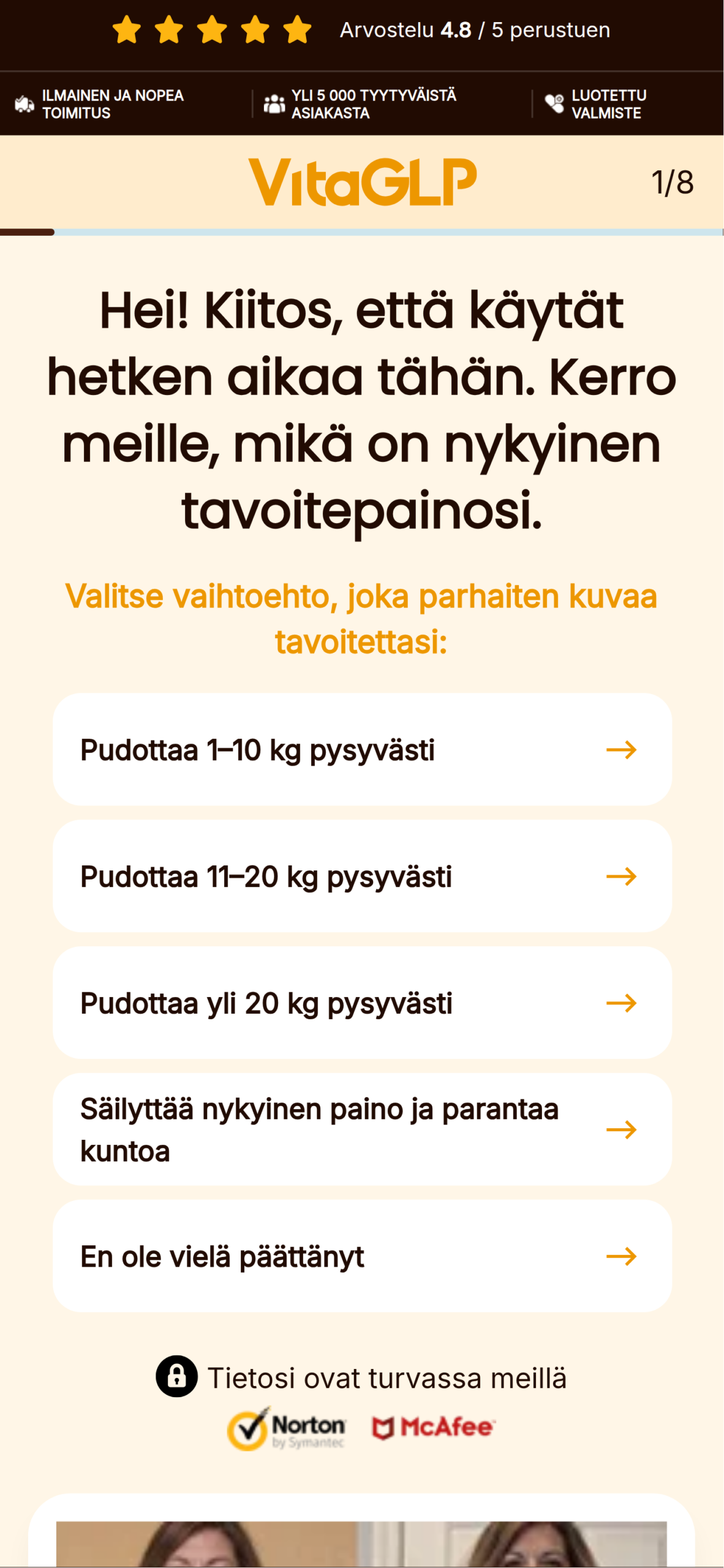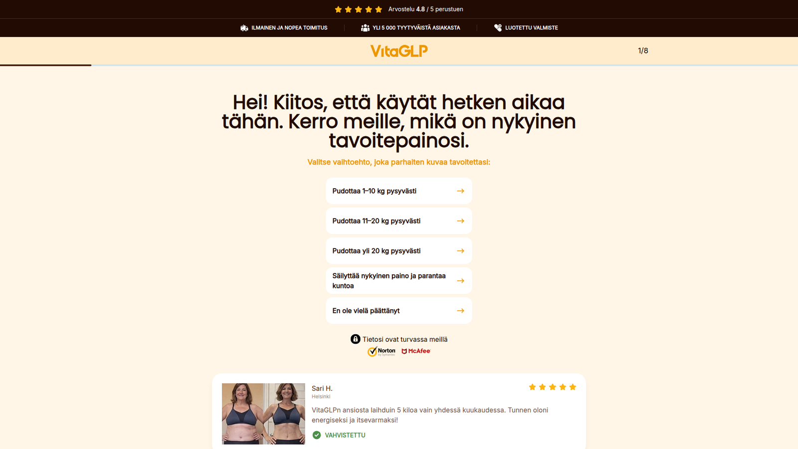 VitaGLP on luonnollinen ravintolisä, joka on kehitetty henkilöille, jotka haluavat parantaa aineenvaihduntaansa terveellisellä tavalla. Toisin kuin lyhytaikaiset dieetit tai aggressiiviset stimulantit, VitaGLP toimii kehosi kanssa: luonnollisista ainesosista koostuva koostumus — mukaan lukien korealainen ginseng, vihreä tee-uute, inkivääri ja berberiini — tukee rasvanpolttoa, ruoansulatusta, energiaa ja hormonaalista tasapainoa. Valmistettu EU-sertifioiduissa laitoksissa FDA-standardien mukaisesti, ja jo yli 5 000 asiakkaan luottama.