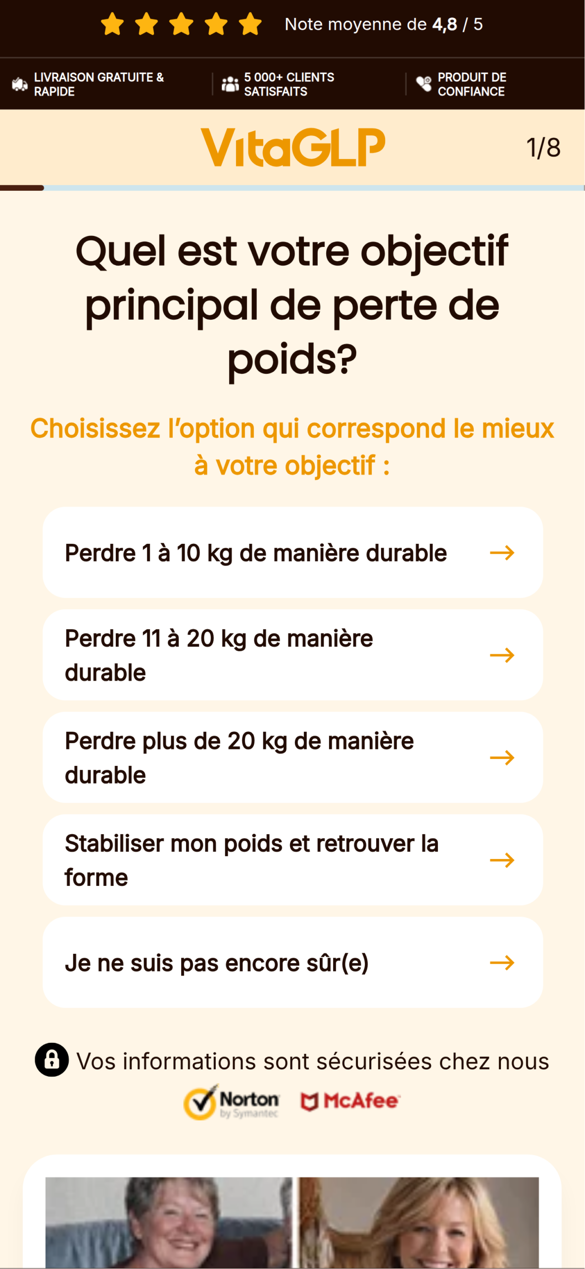 • Prenez VitaGLP quotidiennement selon les instructions figurant sur l'emballage. Pour de meilleurs résultats, associez la prise à une alimentation équilibrée. Notre quiz vous aide à trouver le plan optimal pour votre situation.